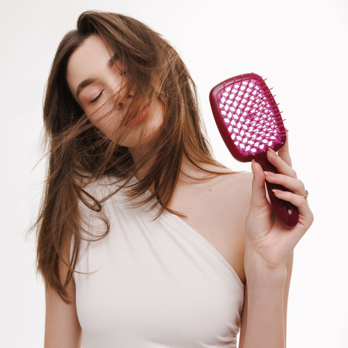 Массажная база щётки состоит из запатентованного изобретения, которое представляет собой основание с отверстиями в форме пчелиного улья. Горячий воздух фена распределяется настолько равномерно, что не травмирует кожу головы, не иссушает локоны и волосы высушены за несколько мгновений без всякого вреда.